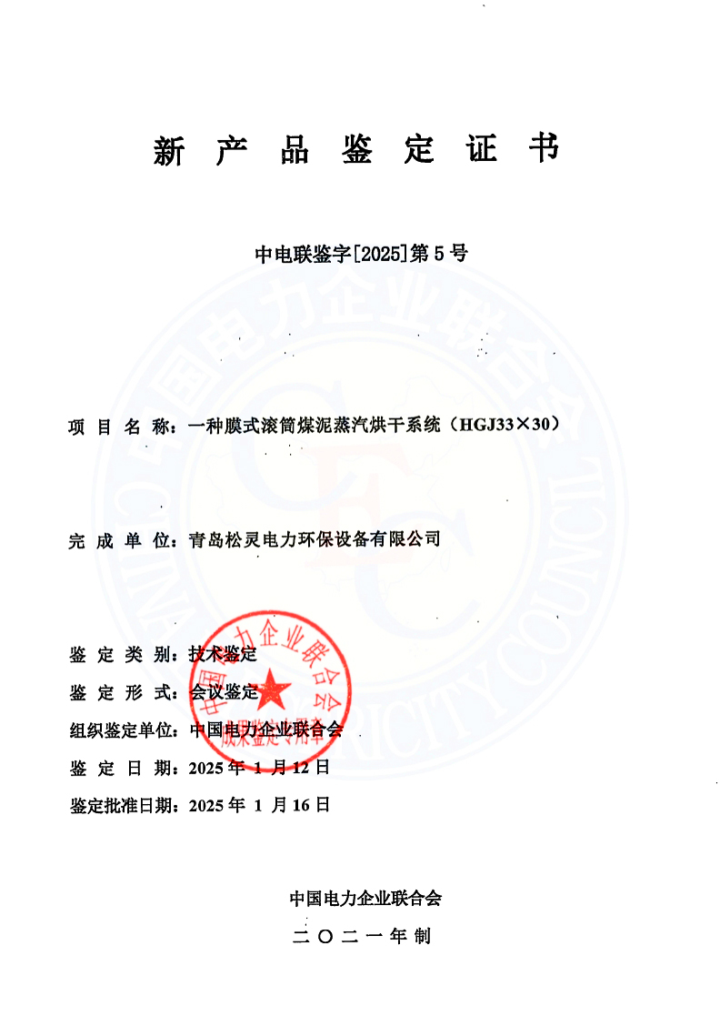 【概要描述】2025年1月12日,中國電力企業(yè)聯(lián)合會于山東省膠州市主持召開了青島松靈電力環(huán)保設(shè)備有限公司“一種膜式滾筒煤泥蒸汽烘干系統(tǒng)” 產(chǎn)品技術(shù)鑒定會。